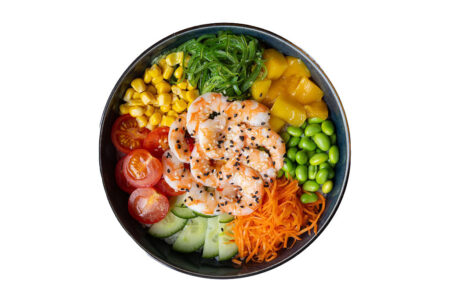 Nr.625 Poke Krevettidega 9.90 € 7.92 € edamame, hiidkrevett, kurk, magus chilli kaste, mais, mango, marineeritud porgand, merevetika, seesamiseemned, tomat, unagi kaste.